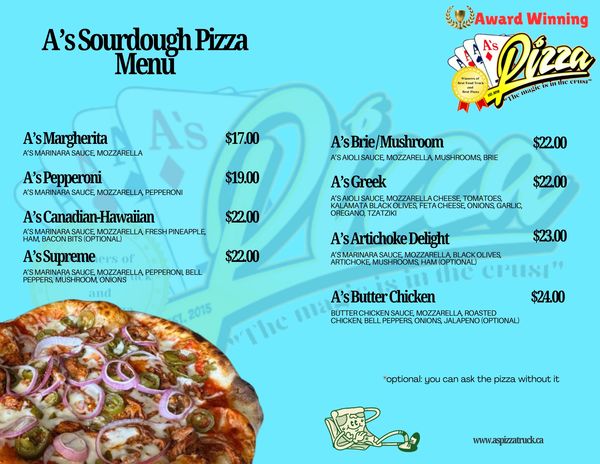 We have the same ordering system for A's Sourdough Pizzas as for A's Signature and GF Pizzas. You can order A's Sourdough Pizzas for Friday Pick up at the NewRoads Mazda in Newmarket, ON